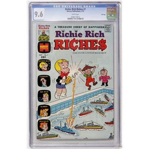 <B>Richie Rich Riches #7 File Copy (Harvey, 1973) CGC NM+ 9.6 White pages.</B></I> First appearance of Aunt Novo. Overstreet 2007 NM- 9.2 value = $20. CGC census 9/07: 1 in 9.6, none higher.<BR><BR><b>Shipping:</b> Comics - Slabbed (certified) (<a target="_blank" href="http://www.heritageauctions.com/common/shipping.php">view shipping information</a>)