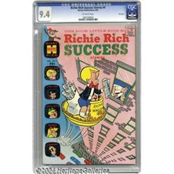 <B>Richie Rich Success Stories #4 File Copy (Harvey, 1965) CGC NM 9.4 Off-white pages.</B></I> Witness Richie Rich... delivering papers to make some extra money? This is the only copy of the issue that CGC has certified to date; as Harvey comics were usually read by younger kids than bought DCs or Marvels, we can't imagine that there are many more "slabworthy" copies out there. Overstreet 2004 NM- 9.2 value = $130. <BR><BR><B>Important notice:</B> Heritage usually auctions material at the rate of 200-250 lots per hour. On some occasions eBay Live bid software or the Internet may not be able to keep up with the pace of the auction. We recommend placing a realistic absentee bid now as insurance to avoid disappointment. Occasionally the auctioneer may eliminate or reject an eBay Live bid, and the auctioneer may also reopen a lot after the close of the eBay live bidding (usually because we missed an audience bid), and may reject your bid even if it shows you as the winning bidder. By bidding via eBay Live, you agree that Heritage may award the lot to another bidder at its sole discretion under the circumstances described above or any other reasonable circumstances. Since eBay bids are not shown to us until we open the lot on the floor, we treat those bids just like floor bids. In most cases the floor responds before the eBay bid is presented to us, due to Internet lag time, so for consistency we have made it a policy that floor bids are always considered first over tie eBay live bids. Also please note that all Heritage lots purchased through eBay Live carry a 20% Buyer's Premium. Please make sure you read the Terms and Conditions before you bid. </span></font></tr></table></td></tr></table>
