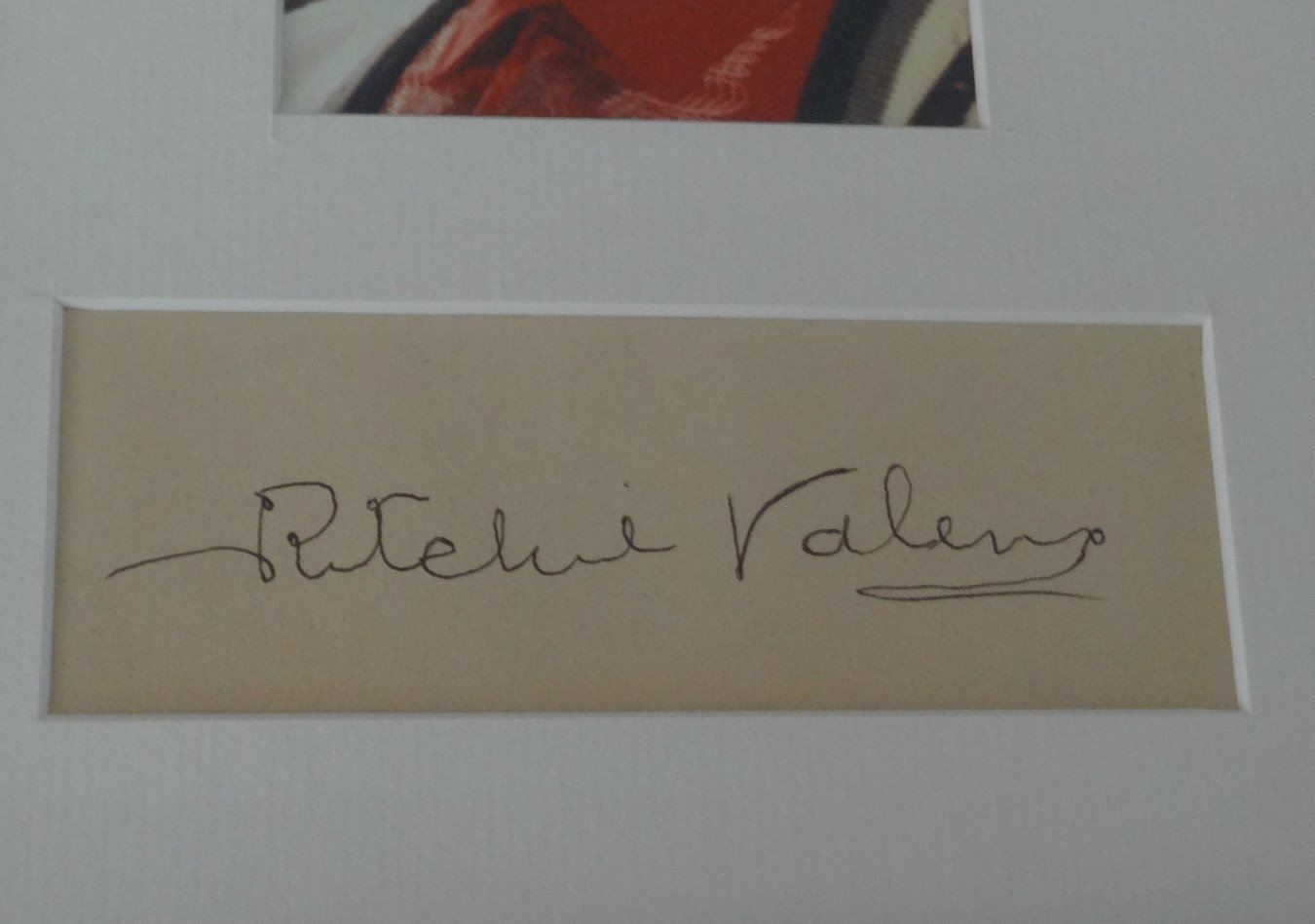An autograph from one of the pioneers of Rock n Roll - Richie Vallens. Famous for his hit La Bamba, and for dying in the place crash that took away his life alongside Buddy Holly and The Big Bopper. Mounted, framed and supplied with coa. In very good condition.
