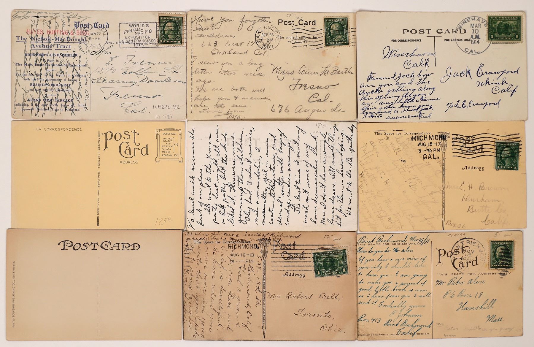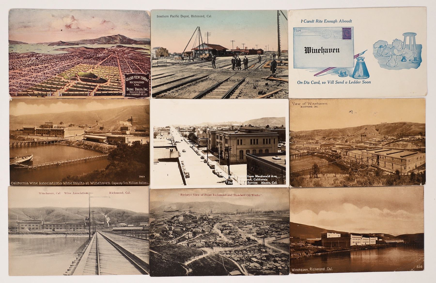 10 Richmond postcards, a few RPC's. Southern Pacific Depot, Winehaven, Burg Bros., Standard Oil Works, Peres School, street scene etc. California Richmond
