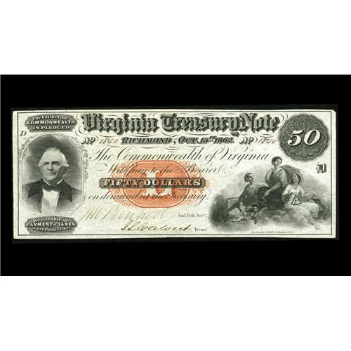 Richmond, VA- Virginia treasury Note $50 Oct. 15, 1862 Richmond, VA- Virginia Treasury Note