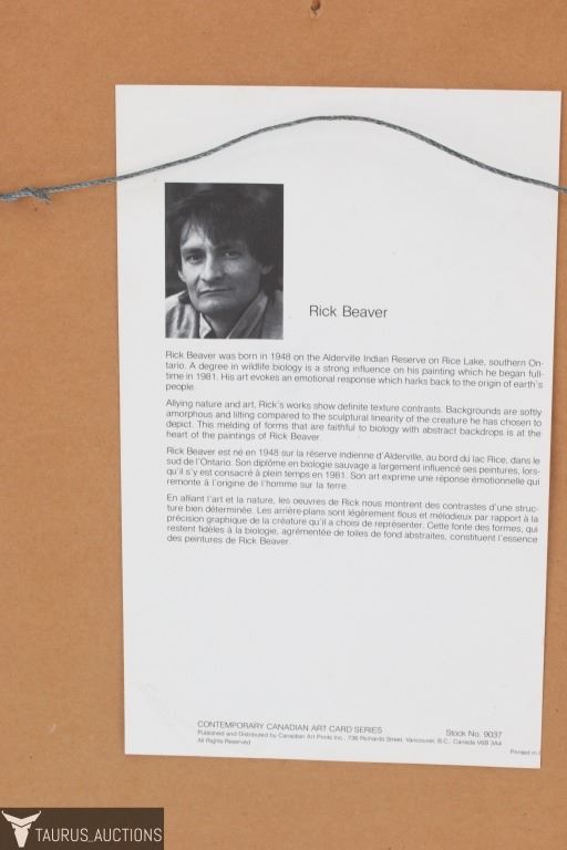 Rick Beaver (Mississauga Ojibway) was born in 1948 on the Alderville Indian Reserve on Rice Lake, Southern Ontario. A degree in wildlife biology is a strong influence on his painting which he began full-time in 1981. His art evokes an emotional response which harks back to the origin of earth’s people.