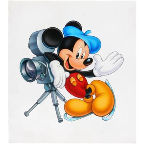 <B>Rick Brown - "Mickey Mouse and Pluto" Promotion Illustration Original Art (Disney, 1991).</B></I> Lights, camera... Mickey! Disney artist, Rick Brown illustrates the most universally known and loved cartoon character in the world in this dynamic illustration. Rendered in acrylic on heavy illustration board, the image area measures 12.5" x 12.5". In Excellent condition.<BR><BR><b>Shipping:</b> Flat Material, Small (<a target="_blank" href="http://www.heritageauctions.com/common/shipping.php">view shipping information</a>)