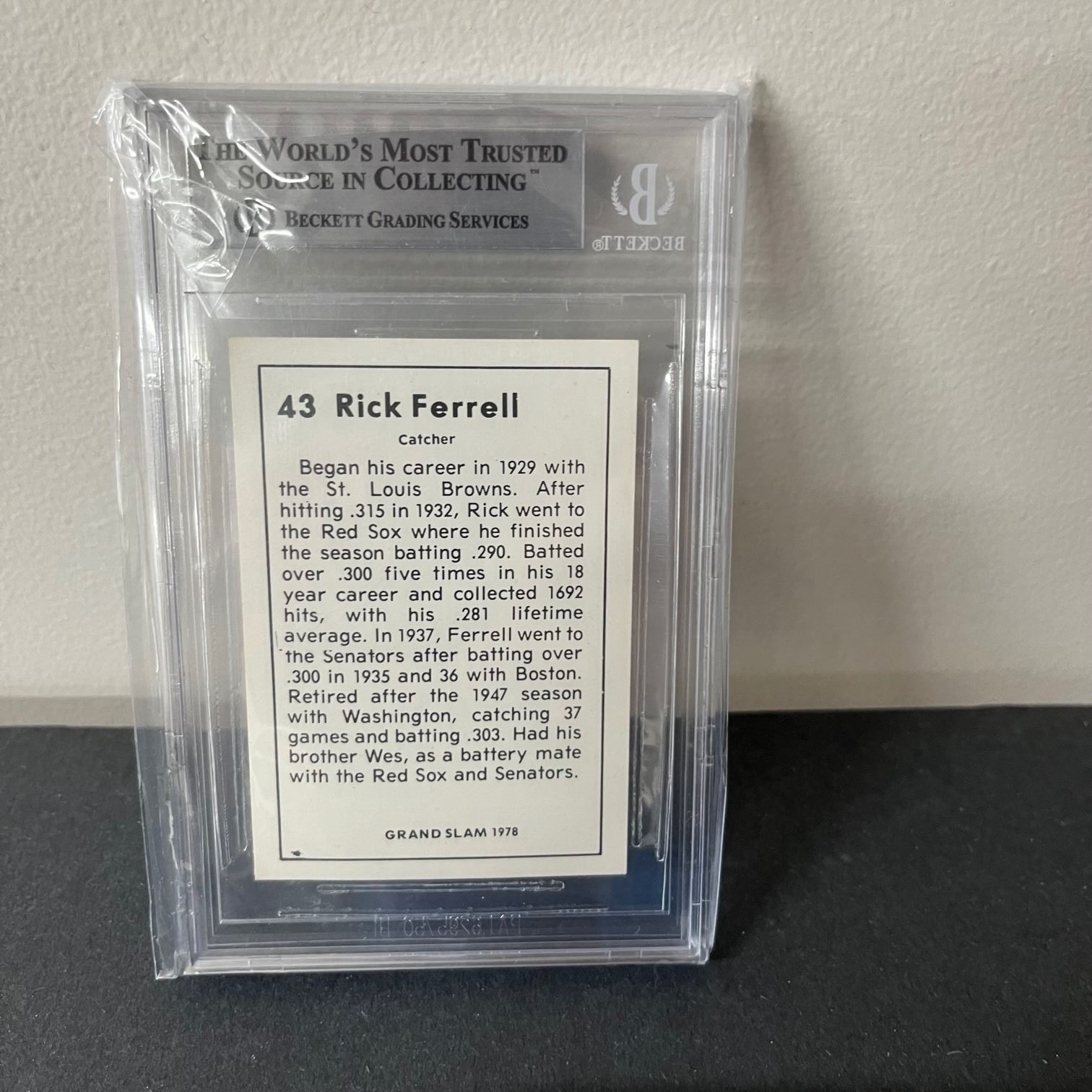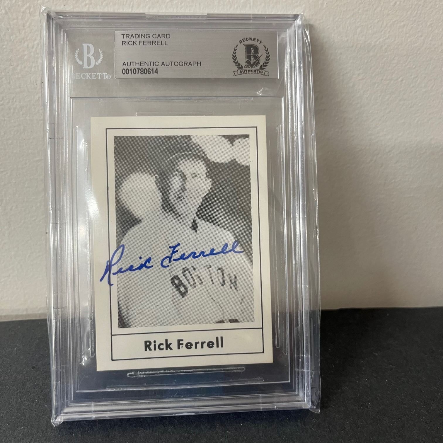 an autographed trading card of HOF Boston Catcher Rick Ferrell. The autograph ie encapsulated and certified by Beckett We are a veteran owned company. Please look at the pictures carefully to determine what you believe the condition of collecitible is. We are currently accepting consignments. Email us a aeronhouse1994@gmail.com or visit our website, www.ahauctionhouse.com. We are currently seeking Star Wars related Collectibles to consign.