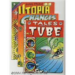Rick Griffin Miscellaneous Comics Group (Various, 1969-72) Condition: NM. A collection of comics from one of the most popular artists of his era. The late Rick Griffin was obsessed with music, comics, and the ocean. This group brings all that together with some tough to find Undergrounds. Included in this lot are Changes #3 (featuring Crumb, Shelton, Jaxon, and Spain), Tales from the Tube #1 (Surfer Magazine, large version), and The Man from Utopia. These comics are all in near mint or better condition and were all printed only once. Quite a score for one lucky Underground fan! Overstreet does not list Undergrounds at this time. 3 Comic Books Important notice: Heritage usually auctions material at the rate of 200-250 lots per hour. On some occasions eBay Live bid software or the Internet may not be able to keep up with the pace of the auction. We recommend placing a realistic absentee bid now as insurance to avoid disappointment. Occasionally the auctioneer may eliminate or reject an eBay Live bid, and the auctioneer may also reopen a lot after the close of the eBay live bidding (usually because we missed an audience bid), and may reject your bid even if it shows you as the winning bidder. By bidding via eBay Live, you agree that Heritage may award the lot to another bidder at its sole discretion under the circumstances described above or any other reasonable circumstances. Since eBay bids are not shown to us until we open the lot on the floor, we treat those bids just like floor bids. In most cases the floor responds before the eBay bid is presented to us, due to Internet lag time, so for consistency we have made it a policy that floor bids are always considered first over tie eBay live bids. Also please note that all Heritage lots purchased through eBay Live carry a 20% Buyer's Premium. Please make sure you read the Terms and Conditions before you bid.