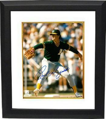 Rick Honeycutt was a left-handed pitcher for 6 different teams over 21 years from 1977 to 1997. He pitched in 30 post-season games, including 20 league championship series games and 7 World Series games, and never lost a game, going 3-0. Honeycutt gave up zero runs in the 1988 and 1990 post-seasons, and was a member of the Oakland Athletics 1989 World Series championship team. Rick Honeycutt signed Oakland Athletics 8x10 Photo. Certificate of Authenticity from Athlon Sports. Custom White Mat and Premium Black Frame as shown.
