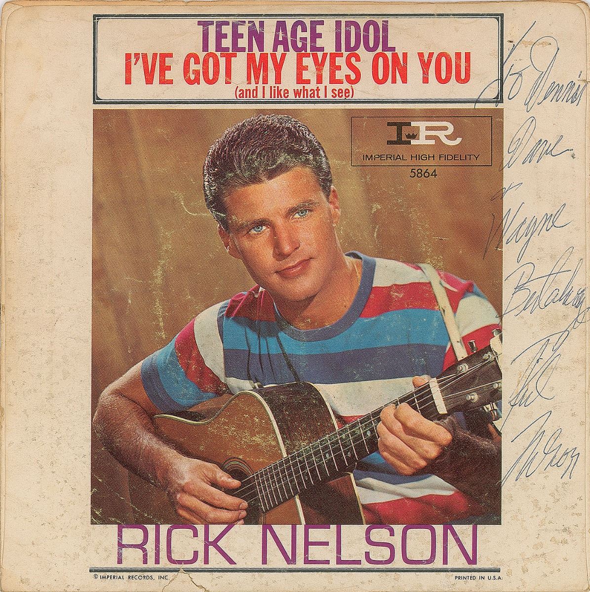 Pair of Rick Nelson 45 rpm records, including: an Imperial Records single for ‘I Need You / It’s Up to You,’ and an Imperial Records single for ‘Teenage Idol / I’ve Got My Eyes on You (and I Like What I See).’ Both are signed and inscribed on the front covers in black ballpoint, “To Dennis, Dave & Wayne, Best Always, Rick Nelson.” In overall very good condition, with scattered overall scuffing and creasing. The records are included.