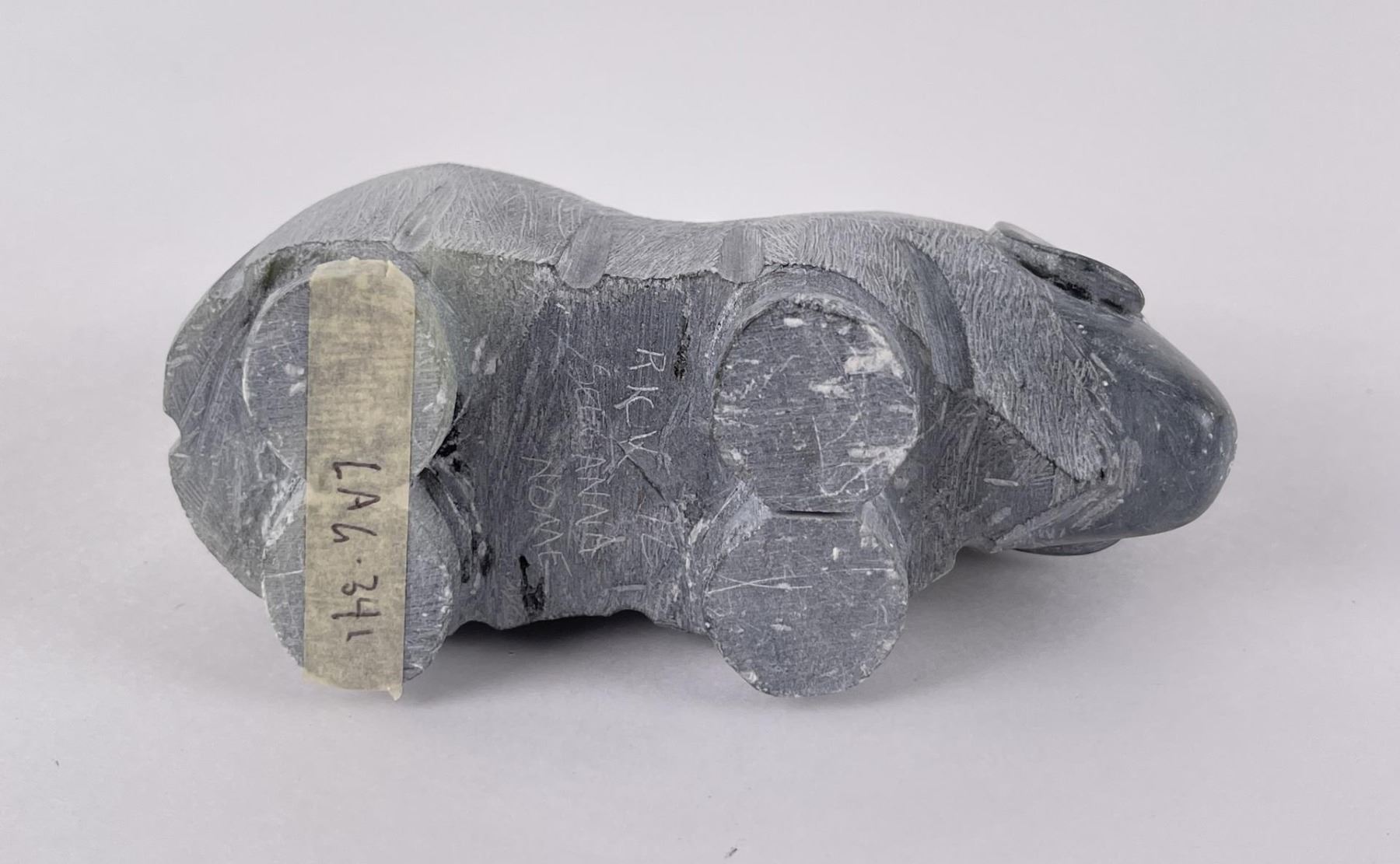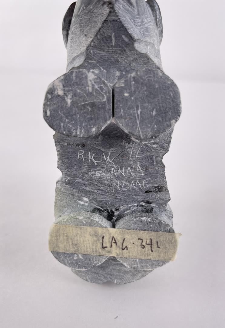 5 1/8" long, 3 1/4" tall. Rick Seeganna is active/lives in Alaska. Rick Seeganna is known for Sculpture. Allard Auction Collection Inv: LAG 35318