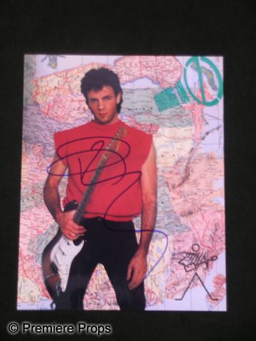 This is a glossy, color autographed photo of 1980's actor and music heartthrob Rick Springfield. The photo features Rick Springfield standing in front of a large size map of the world, wearing a red sleeveless shirt and holding his guitar. Photo is signed in blue ink. The autograph was obtained by a gentleman who has been collecting autographs for over 20 years. (measures approx. 8"x 10")