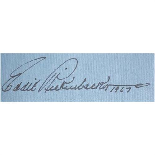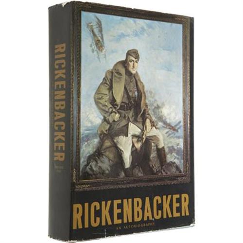 <B>Edward V. Rickenbacker. </B></I><B><I>Rickenbacker, An Autobiography</B></I></B></I><B>.</B></I> Englewood Cliffs: Prentice-Hall, Inc., 1967. <BR>Fifth printing. Boldly signed and dated by the author on the front free endpaper. Octavo. 458 pages. Illustrated with photographs.<BR><BR>Light blue cloth with black cloth back strip. Titles in gilt on the spine. Corners slightly bumped, else light shelf wear. Dust jacket marked "Third Printing" on the inside flap. Dust jacket slightly chipped at the edges and corners. Very good.<BR><BR><BR><b>Shipping:</b> Books & Catalogs (<a target="_blank" href="http://www.heritageauctions.com/common/shipping.php">view shipping information</a>)