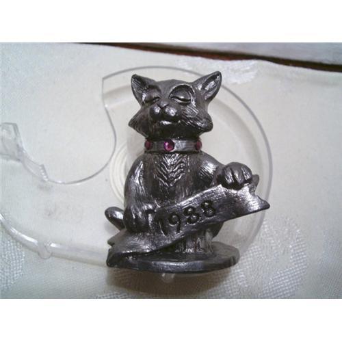 This proud pewter cat has it's eyes closed and is holding a 1988 banner. It is #1452 and has a amethyst color rhinestone collar. Signed Michael Ricker; the value is sure to increase since Mr. Ricker's death . What a great addition to your pewter animal or cat collection.