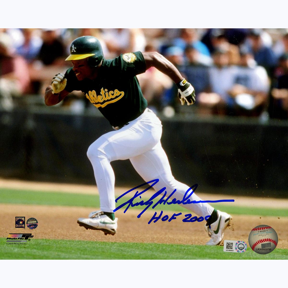 Rickey Henderson Signed 'Stealing 2nd Base' 8x10 Photo w/ "HOF 2009" Insc