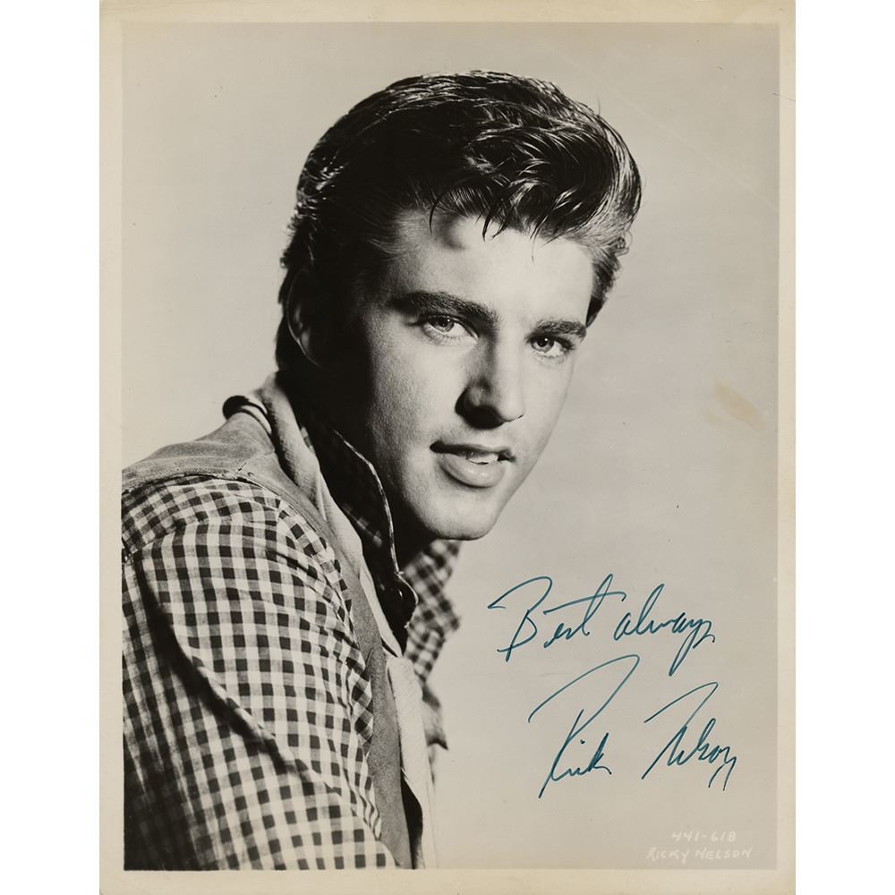 Vintage glossy 8 x 10 photo of the iconic teen idol, signed in black felt tip, "Best always, Ricky Nelson." In fine condition.