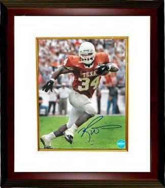 Ricky Williams played college football for the Texas Longhorns. Williams holds or shares 20 NCAA records, and became the NCAA Division I-A career rushing leader in 1998 with 6,279 yards. Williams won the 64th Heisman Trophy, becoming the second Texas Longhorn to win this honor, joining Earl Campbell. Ricky Williams has hand autographed this Texas Longhorns 8X10 Photo. Fiterman Williams Exclusive Hologram and Certificate of Authenticity from Athlon Sports. Custom White Mat and Premium Mahogany Frame as shown.