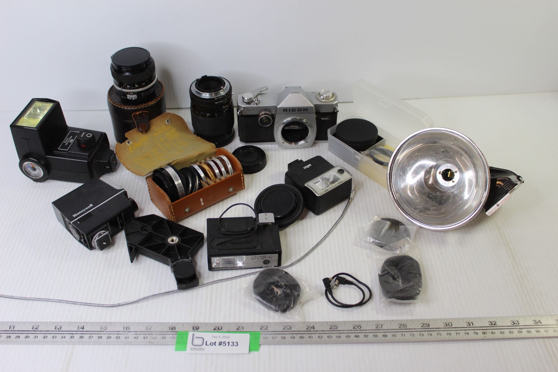 Ricoh Camera Box w/Assortment of Camera Accessories - Lenses - Lighting - Lense Filters