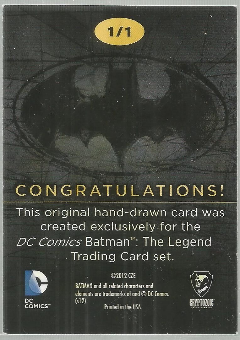 Incredible artist sketch card chase card from the Batman the Legend card set, very rare to hit one of these and each are one of a kind art and this is the most detailed one we have seen! A one of one card and marked as