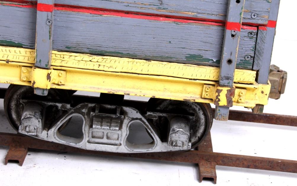 This is a 7.5" gauge live steam ride on engineer car. This car came from the James Edgerley collection of the OR&W Railroad in Bozeman, Montana. This car was used behind a locomotive for the engineer to sit and control the locomotive. The car has an implement seat for the engineer to sit on. The car has OR&W signs on both sides and shows good overall condition. The engineer car measures 18" wide, 73" long and 16" tall.