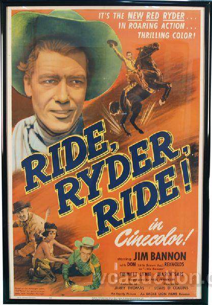 "Ride, Ryder, Ride!" In Cinecolor Movie Poster Advertisement "It's The New Red Ryder...In Roaring Action...Thrilling Color!" in frame - 28" x 41"