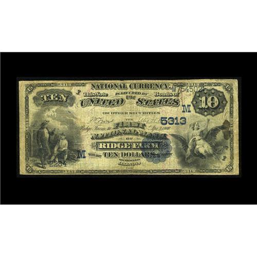 <B>Ridge Farm, IL</B></I> - $10 1882 Date Back Fr. 545 <B>The First NB</B></I> Ch. # (M)5313<BR>This <B>Fine</B></I> note was issued by the more difficult to acquire of the two banks located here.