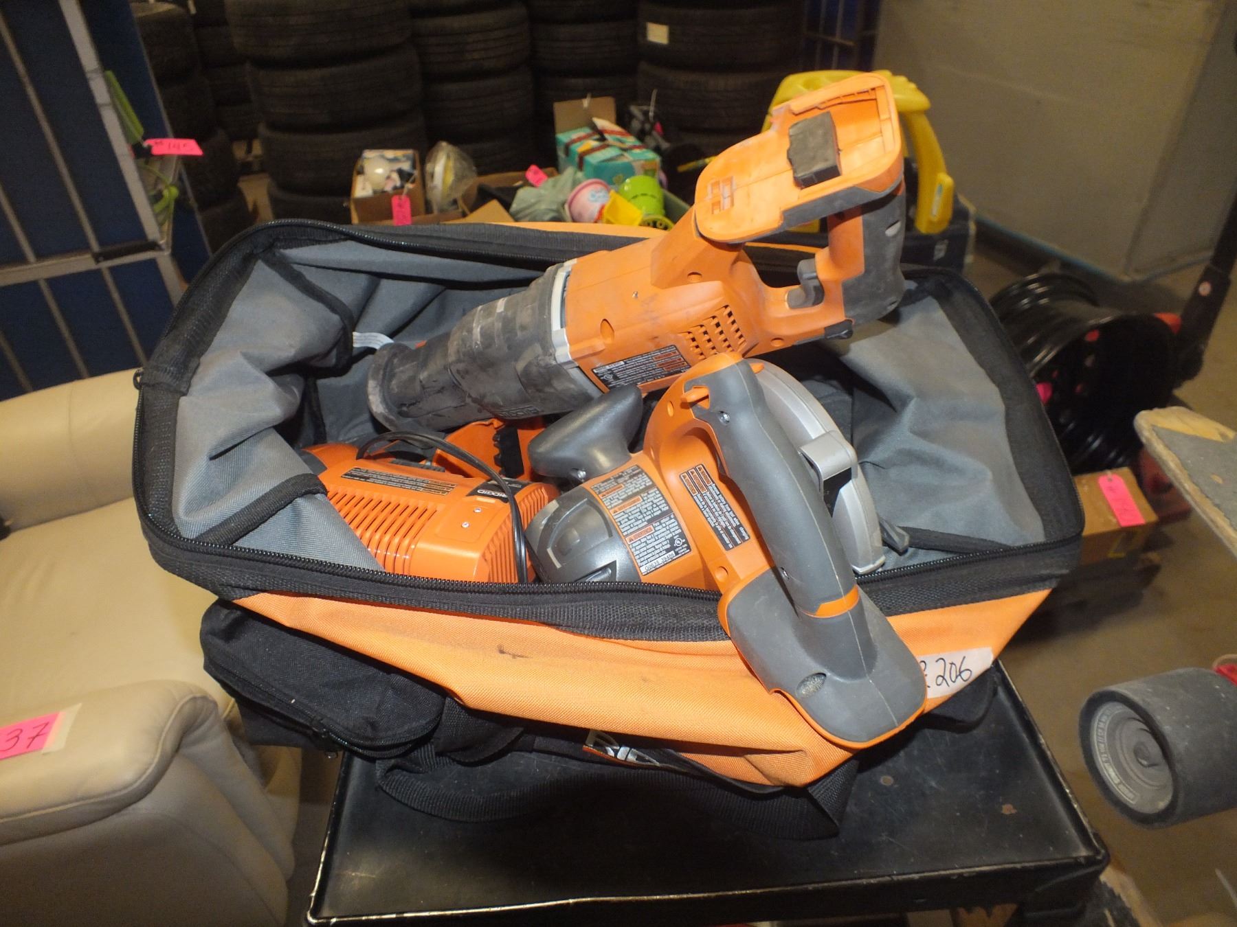 you get 1/2" Drill, Sawzall, 6 1/2" Circular Saw, Flashlight, 1 battery and 1 charger and the bag, in working condition...used