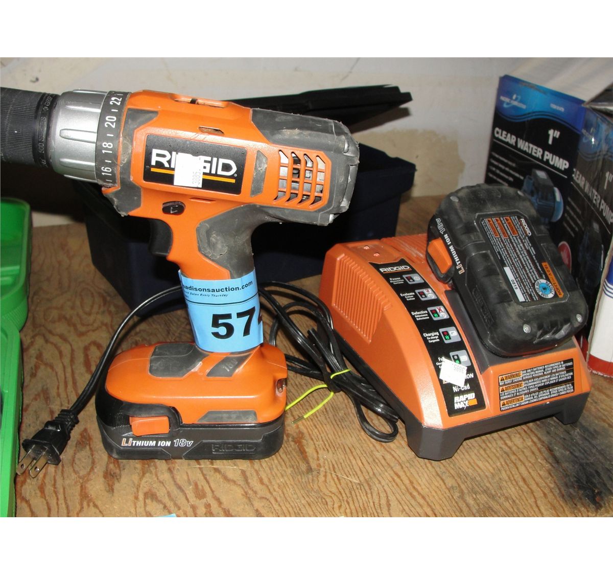 Ridgid cordless drill with cord and 2 batteries