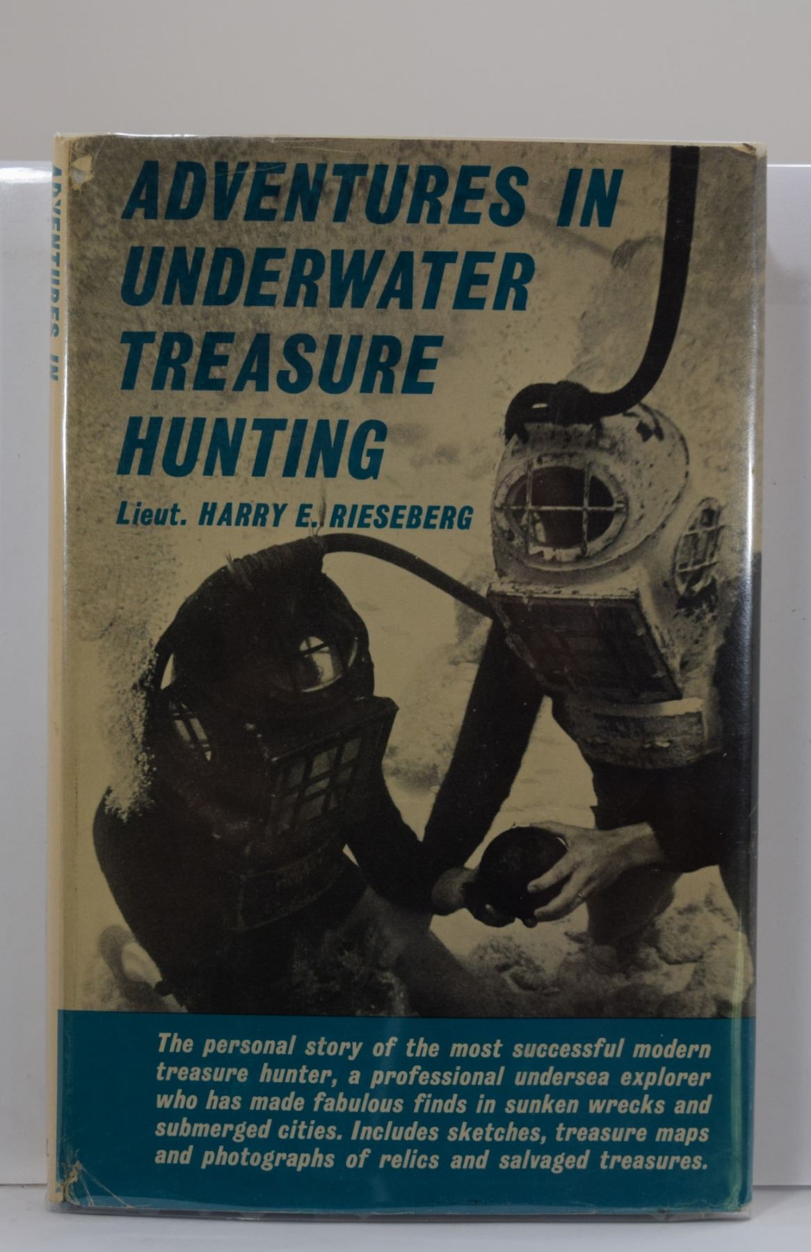 Rieseberg, Lt. Harry E. ADVENTURES IN UNDERWATER TREASURE HUNTING. Frederick Fell, Inc. 1965. 12mo, 140 pages; Hardcover w/ DJ; This book is the story of the author's somewhat exaggerated underwater treasure hunting exploits, including Port Royal, Jamaica, and the story of William Phips' salvage of the "Concepcion". Subject: History - Sunken Treasure