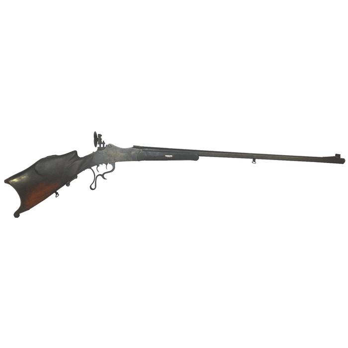 Rifle, European Target, Martini/Aydt Style action, large cal, octagonal barrel, large disk peep sigh