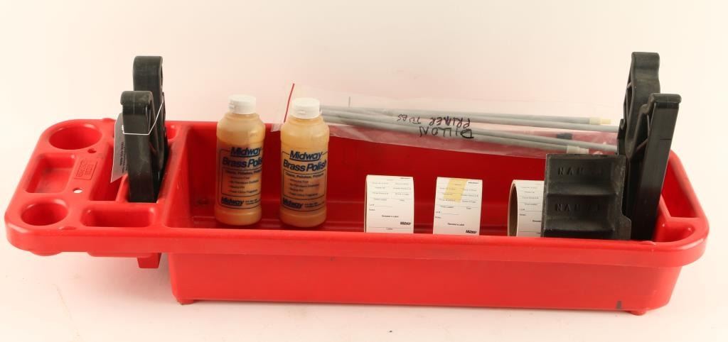 Including paper labels for reloading, Dillon primer tubes, Lyman lead forms, and Midway brass polish.