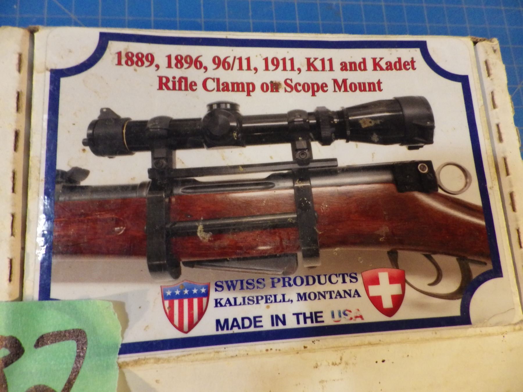 Rifle clamp on scope mount. Not all parts confirmed to be there.