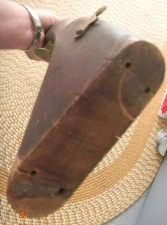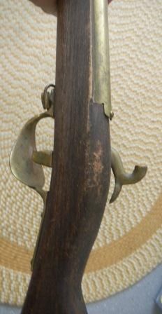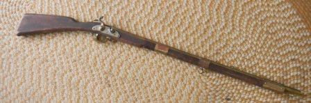 Spanish Reproduction of a Muzzle Loader. The total length is 52 inches by 5 inches. This is made from brass and wood. This item appears to be from 1950. Very decorative wall hanger Shipping $40.00