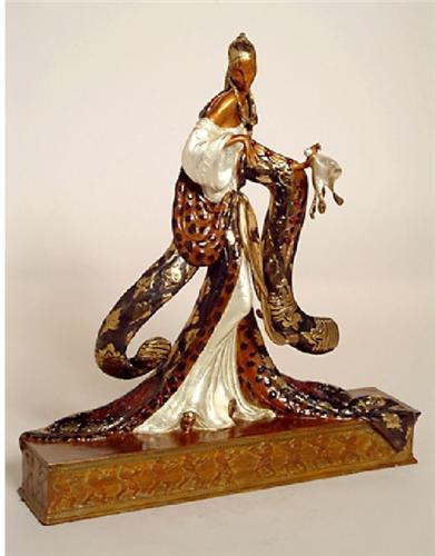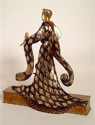 Erte, Romain de Tirtoff Conte (Russian/French 1892-1990) Bronze sculpture, edition of 375. 19 1/2" by 18 1/4" based on a 1920 costume design for the singer Ganna Walska as Gilda in Verdi's opera Rigoletto
