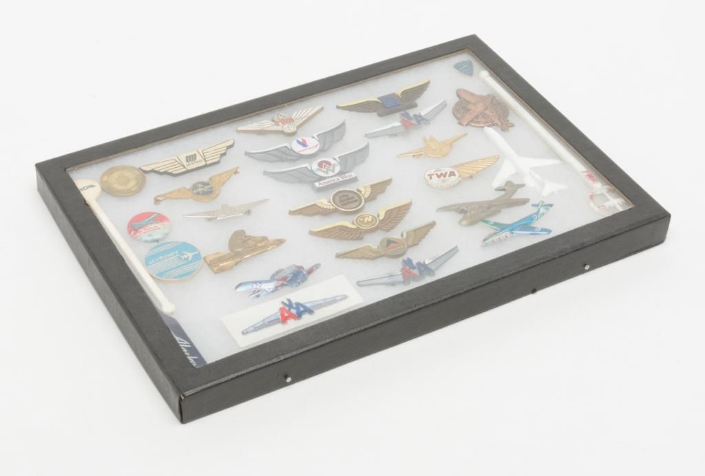 Riker case of approx. 21 Commercial and Military Airline advertising wings plus other related items; some long out-of-production. Est.: $50-$75.