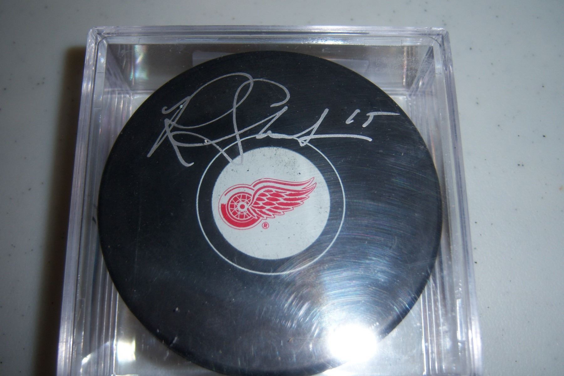 Riley Sheahan Autographed Puck with an Fanatics hologram - you can look up the hologram number on their website and this serves as their COA