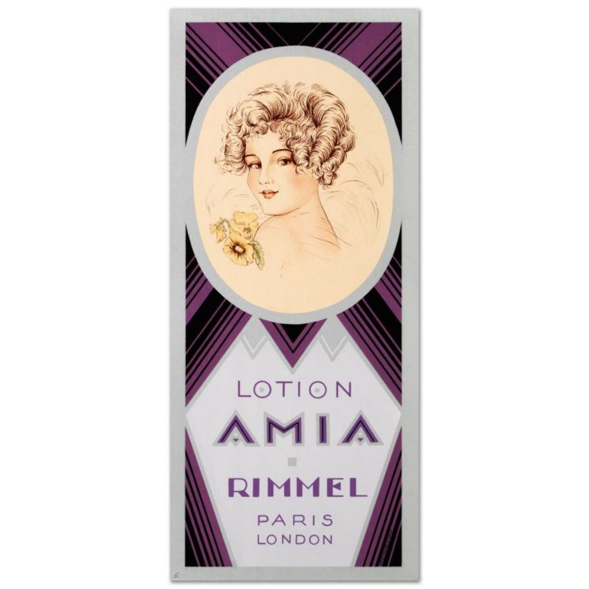 "Rimmel-Lotion Amia" is a hand pulled lithograph on paper by the RE Society. Includes Certificate of Authenticity! Measures approx. 10.5" x 23.5" (with border), 9" x 22.5" (image). Reference #: 202915.