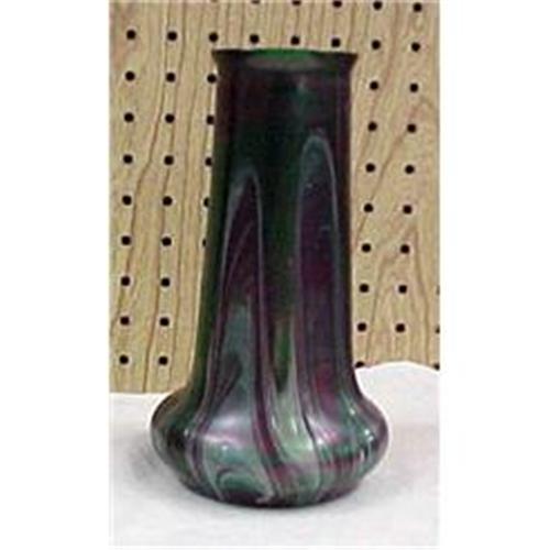 This is an elegant Rindskopf or Loetz Dark Green Vase. It is opaque glass, curtain design with light green and purple waves. Buyer pays shipping and handling costs.