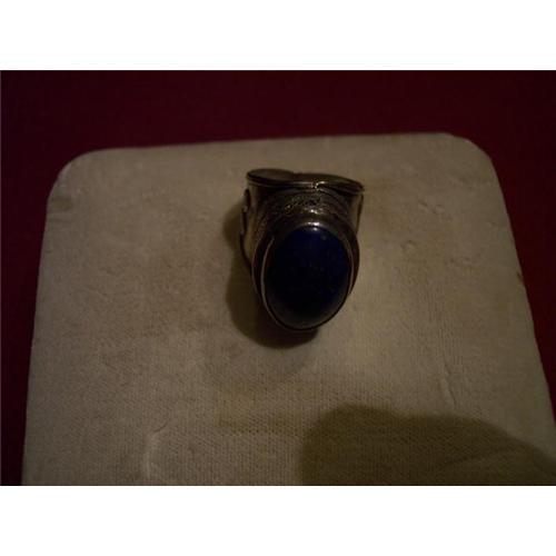 Silver Lapis ring.Very high ring,sits about 3/4" above finger.Large stone is 1" across.Very pretty workmanship on the sides.About a size 7 1/2-8.Great South West look.