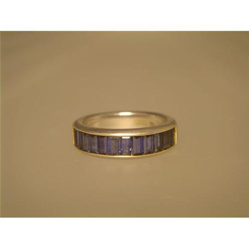 This is a very stylish ring, simple and wearable! It oozes quality!! It is German, circa 1990. It was made by the famous jewelers and goldsmiths Wempe. Wempe is known for its quality and designs throughout Europe. The ring is made in 18ct. white gold and is set with 12 wonderful royal blue Baquette saphires circa 2.5 cts. It is a half eternity ring, when it is on the finger it looks as though the saphires go completely round the ring.The ring weighs in total 7.6 gramms. The quality and condition are excellant. It is U.S.A. size 7 Continental size 56.