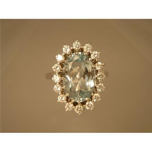 <table width="100%" border="0" cellspacing="0" cellpadding="4"><tr><td><em> A SUPER TESTED OVAL AQUAMARINE AND DIAMOND RING SET IN 14ct. WHITE GOLD. GERMAN CIRCA 1960s.</em></td></tr><tr> <td width="100%"> This is a super tested Aquamarine and Diamond dress ring, set in 14ct. white gold. It is German made in the 1960s. It measures top to bottom a total of 23mm and from side to side 15mm. The centre aquamarine stone measures 15mm x 10mm. The setting is 5mm high. It weighs . The aquamarine has a good colour ( not the best but a definite pale tuquoise) The images are a fairly realistic colour! There are 16 diamonds each 1/32 so a total of 0.5cts. They are S1 tinted white.The U.S. size is 9.5 and the continental size is 61. It can be easily sized if necessary.The quality and condition is very good. This is a fabulous ring that would cause a whole lot of admiration when worn. Super value for money! </td></tr><tr> <td> </td></tr><tr> <td>Reference #: go1078</td></tr><tr><td>Condition:Very good</td></tr><tr><td>Year:Circa 1960</td></tr><tr><td>Country:Germany</td></tr><tr><td>Maker:Unknown</td></tr><tr><td>Height:5</td></tr><tr><td>Depth:15</td></tr><tr><td>Width:23</td></tr><tr><td>Title:Ring Oval Aquamarine Surrounded With </td></tr><tr><td>Style:Oval Aquamarine surounded with Diamonds</td></tr><tr><td>Materials:14ct. white gold Aquamarine and 0.5ct. diamonds S1 tinted white</td></tr><tr><td>Type:Oval Aquamarine surrounded by Diamonds</td></tr><tr><td>Location:Munich Germany</td></tr></table>