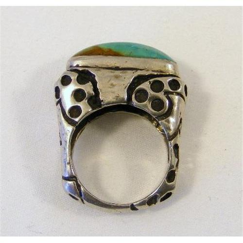 Ring. Sterling and Turquoise.. Hand Made. Size 7. 1" wide and 1.1/4" tall. It sits 1" above the finger. Unreadable signiature on the inside. Total weight 15 grams.Made by Diane Malouf for Nieman Marcus