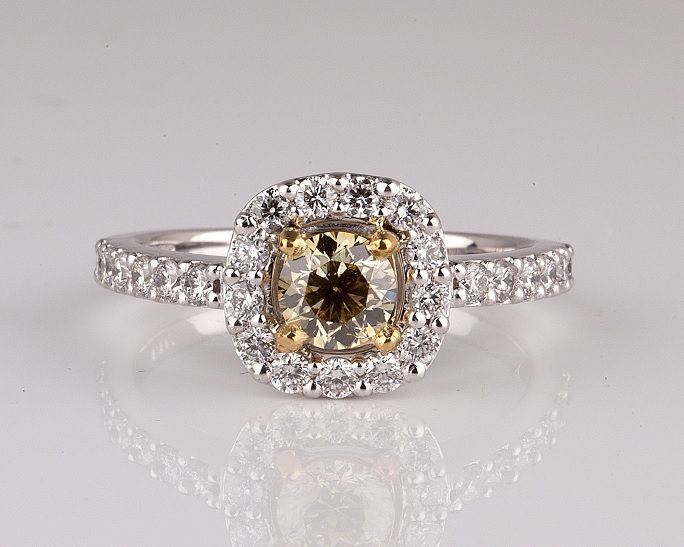 TOTAL DIAMOND WT 1.18CT, YELLOW ROUND CENTER DIAMOND 0.58CT, 4.89g 14KT WHITE AND YELLOW GOLD HALO RING