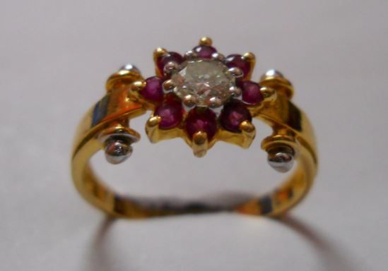 Ring of Diamond 0.22 Ctw,Ruby 0.26 Ctw in 2.230g 18kt Yellow Gold