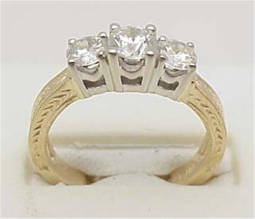 Ring three stone diamond center stone .46Ct with two .27Ct diamonds on each side SI 2 I 14kt two-tone 6.75