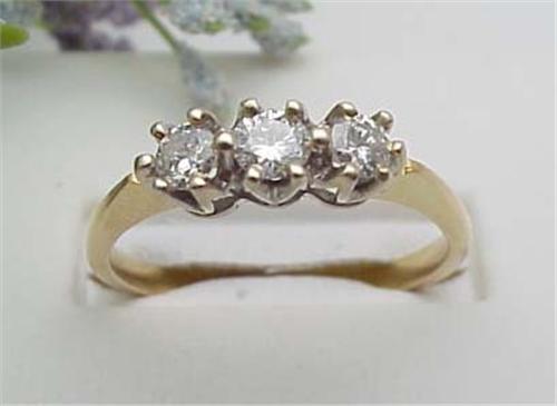Ring with three diamonds .39Ctw 14kt yellow gold 2.5gr size 7.75