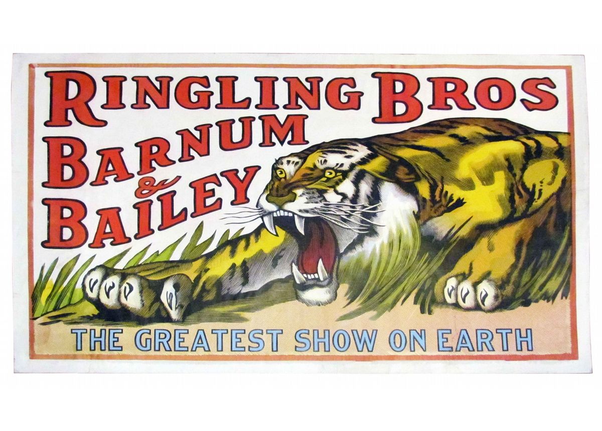 Ringling Bros and Barnum & Bailey Circus Poster. The Greatest Show on Earth, depicting Tiger. Excellent condition. Professionally conserved on linen. 42 X 28 inches.