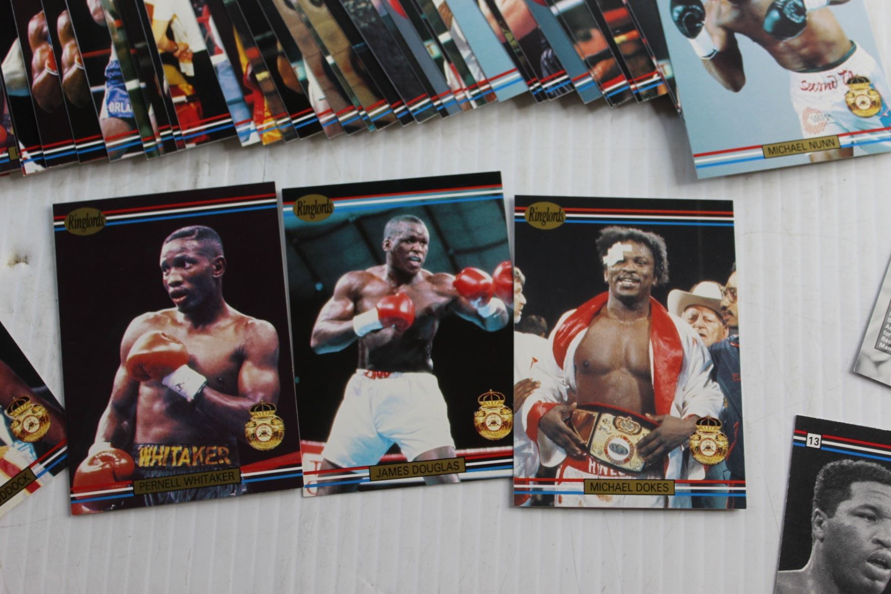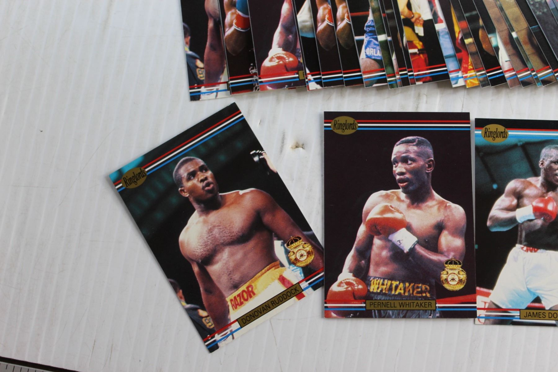 Ringlords, World Boxing Association lot of 55 Boxing Cards - Donovan Razor Ruddock, Pernell Whitaker, James Buster Douglas, Michael Dokes, Iran Barkley, Ray Mercer, Michael Nunn, Mark Breland and Tommy Morrison