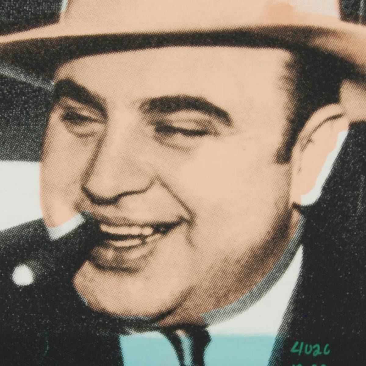 "Al Capone" is a one-of-a-kind hand-pulled silkscreen and mixed media painting on canvas by Ringo. This piece is hand signed by the artist and comes from the Andy Warhol Legacy Series. Includes Certificate of Authenticity. Due to the nature of the canvas, these pieces will need to be mounted for framing. Measures approx. 16" x 16" (image). Reference #: 229143