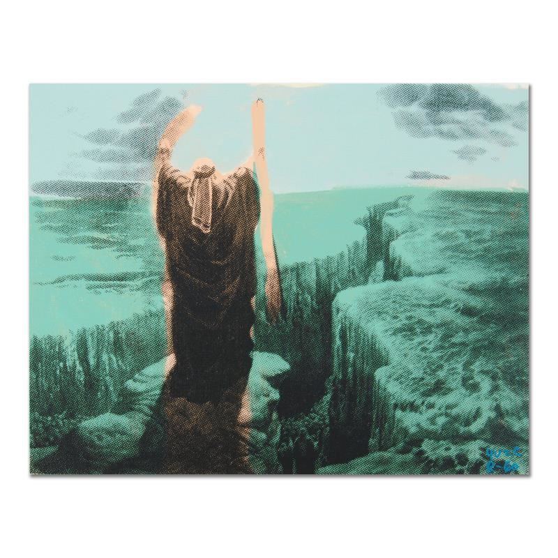 "Moses" is a one-of-a-kind hand-pulled silkscreen and mixed media painting on canvas by Ringo - protege of Andy Warhol's apprentice, Steve Kaufman. This piece is hand signed by the artist and Includes Certificate of Authenticity. This piece comes from the Andy Warhol Legacy Series. Due to the nature of the canvas these, pieces will need to be mounted for framing. Measures approx. 16" x 12" (image).