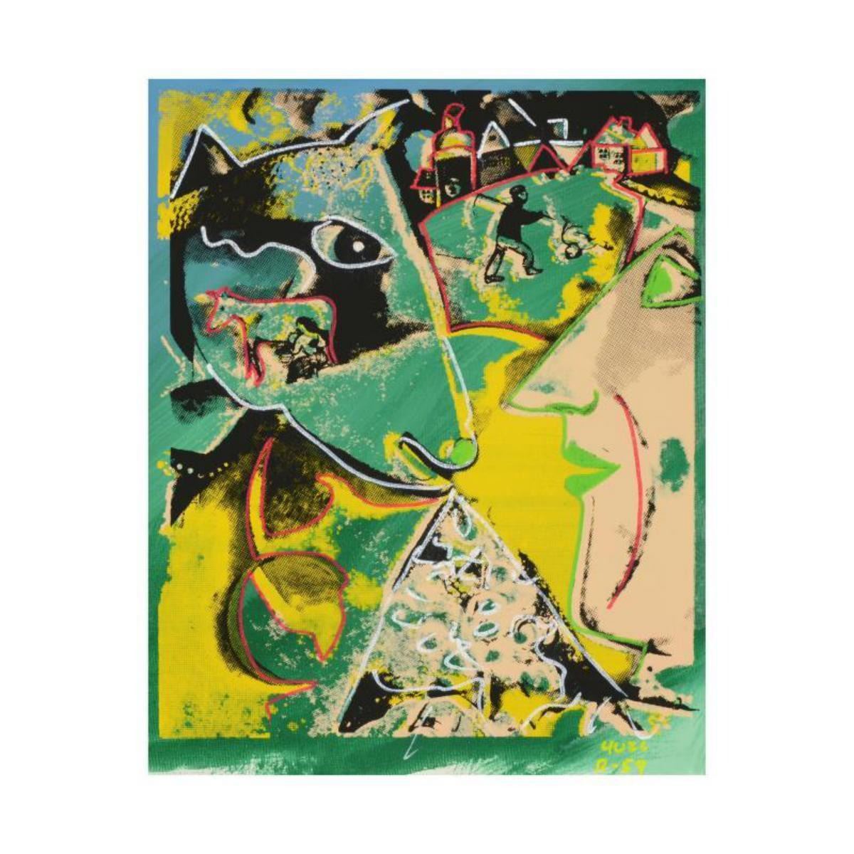 "Farmer and His Cow" is a one-of-a-kind hand-pulled silkscreen and mixed media painting on canvas by Ringo Daniel Funes - protege of Andy Warhol's apprentice, Steve Kaufman. This piece is hand signed by the artist and Includes Certificate of Authenticity. This piece comes from the Andy Warhol Legacy Series. Due to the nature of the canvas these, pieces will need to be mounted for framing. Measures approx. 12" x 16" (image). Reference #: 229477
