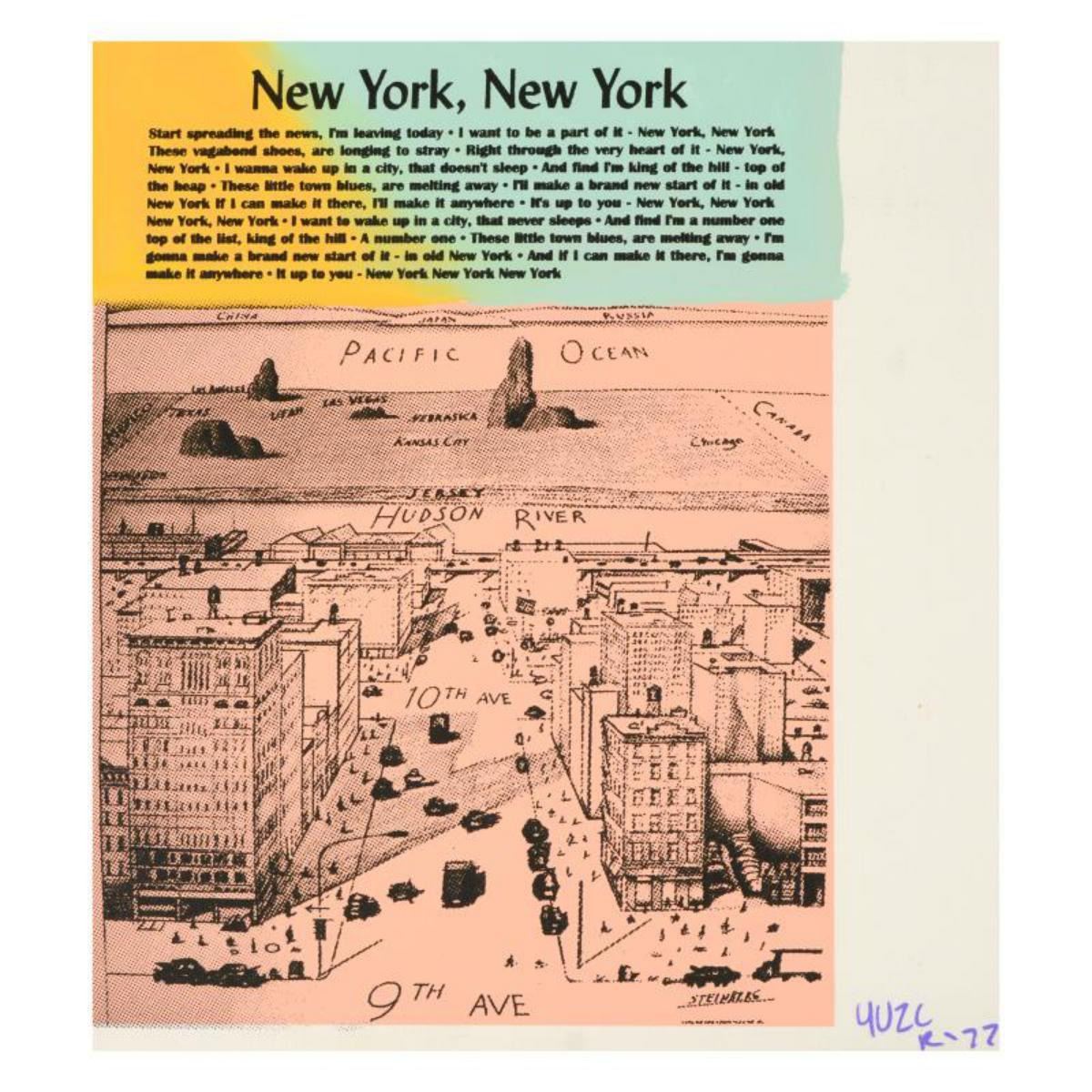 "New York, New York" is a one-of-a-kind hand-pulled silkscreen and mixed media painting on canvas by Ringo (Daniel Funes) - protege of Andy Warhol's apprentice, Steve Kaufman. This piece is hand signed by the artist and Includes Certificate of Authenticity. This piece comes from the Andy Warhol Legacy Series. Measures approx. 14" x 16" (image). ** Please note: the signature for this piece is located within the right border and will be outside the display image when framed; see photo for reference. ** Reference #: 229584