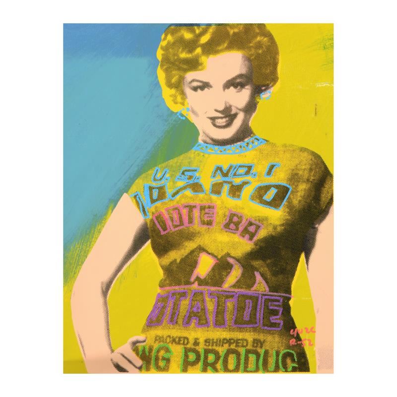 "See My Potato Sack (Marilyn)" is a one-of-a-kind hand-pulled silkscreen and mixed media painting on canvas by Ringo (Daniel Funes) - protege of Andy Warhol's apprentice, Steve Kaufman. This piece is hand signed by the artist and Includes Certificate of Authenticity. This piece comes from the Andy Warhol Legacy Series. Due to the nature of the canvas these, pieces will need to be mounted for framing. Measures approx. 12" x 16" (image).